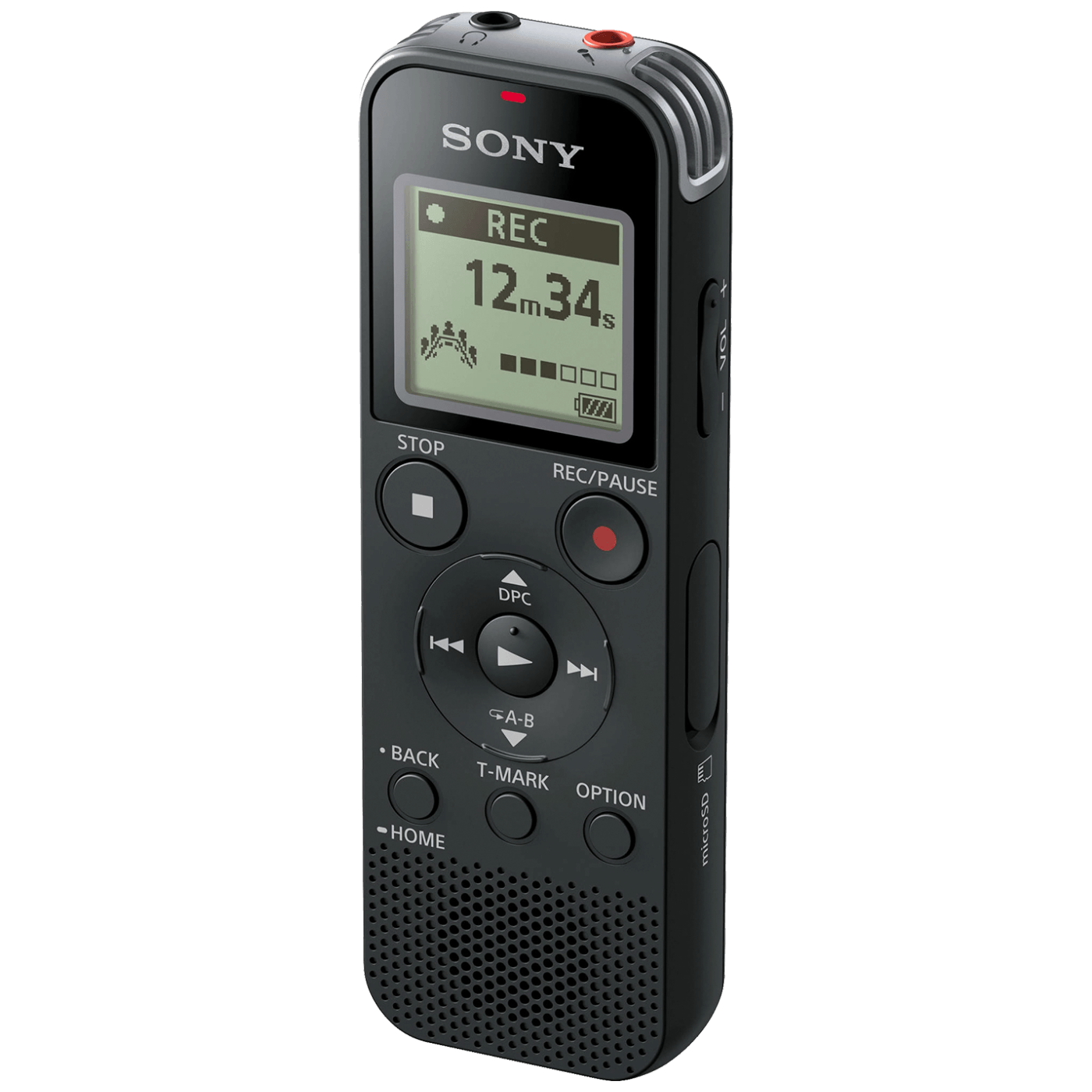 Diktafon sa ugrađenim stereo mikrofonom, ugrađena memorija 4GB, stereo mikrofon, mogućnost povezivanja sa računarom, format snimanja LPCM, MP3, WMA, ulaz za mikrofon, ulaz za slušalice, USB.