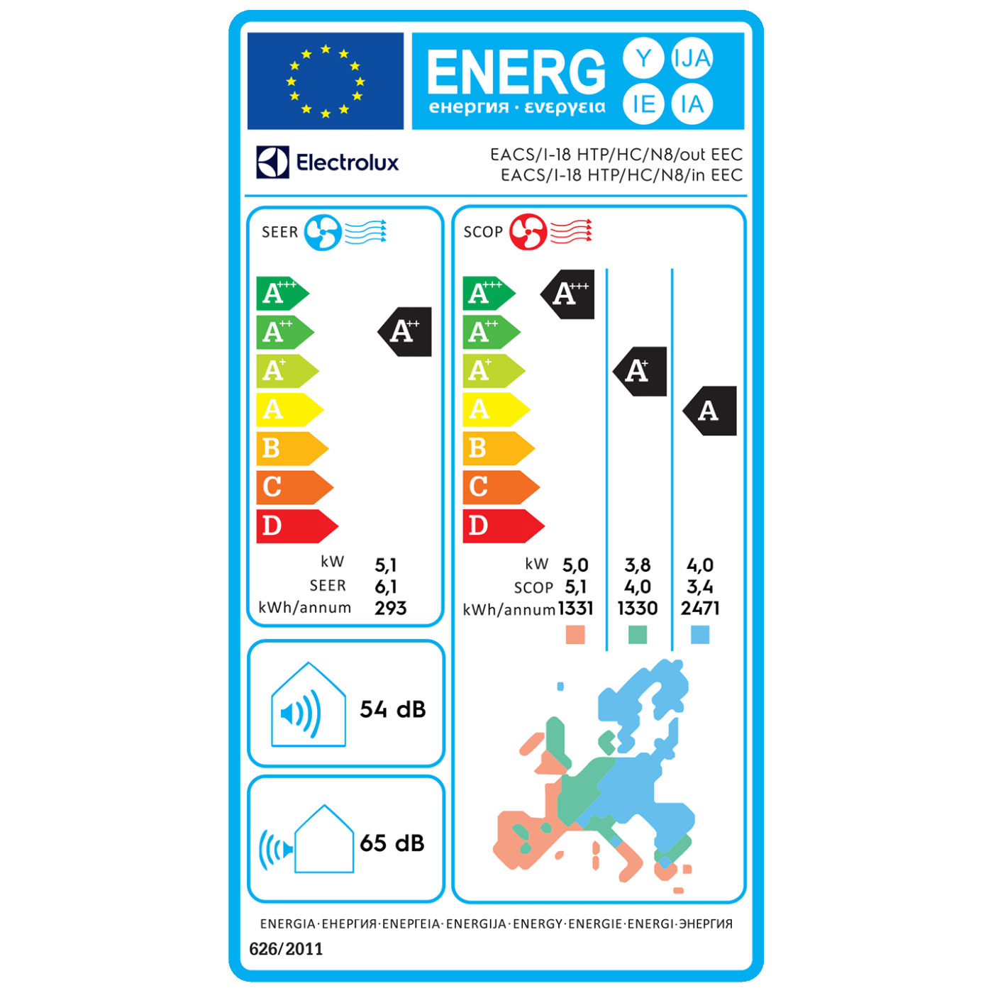 Nazivni učinak grijanja 5.13 kW, nazivni učinak hlađenja 5.1 kW