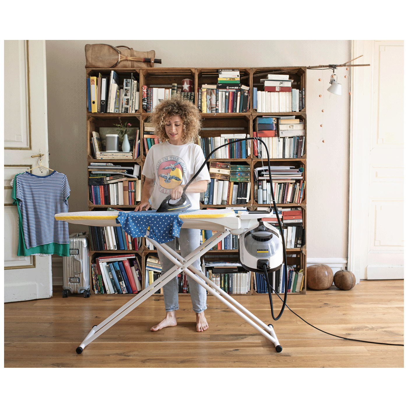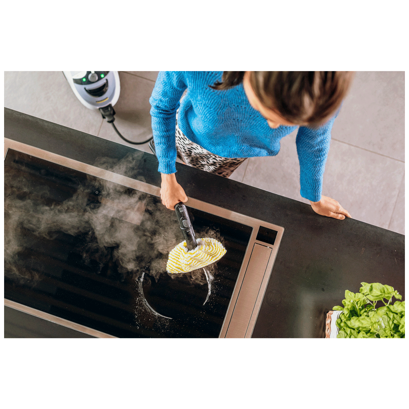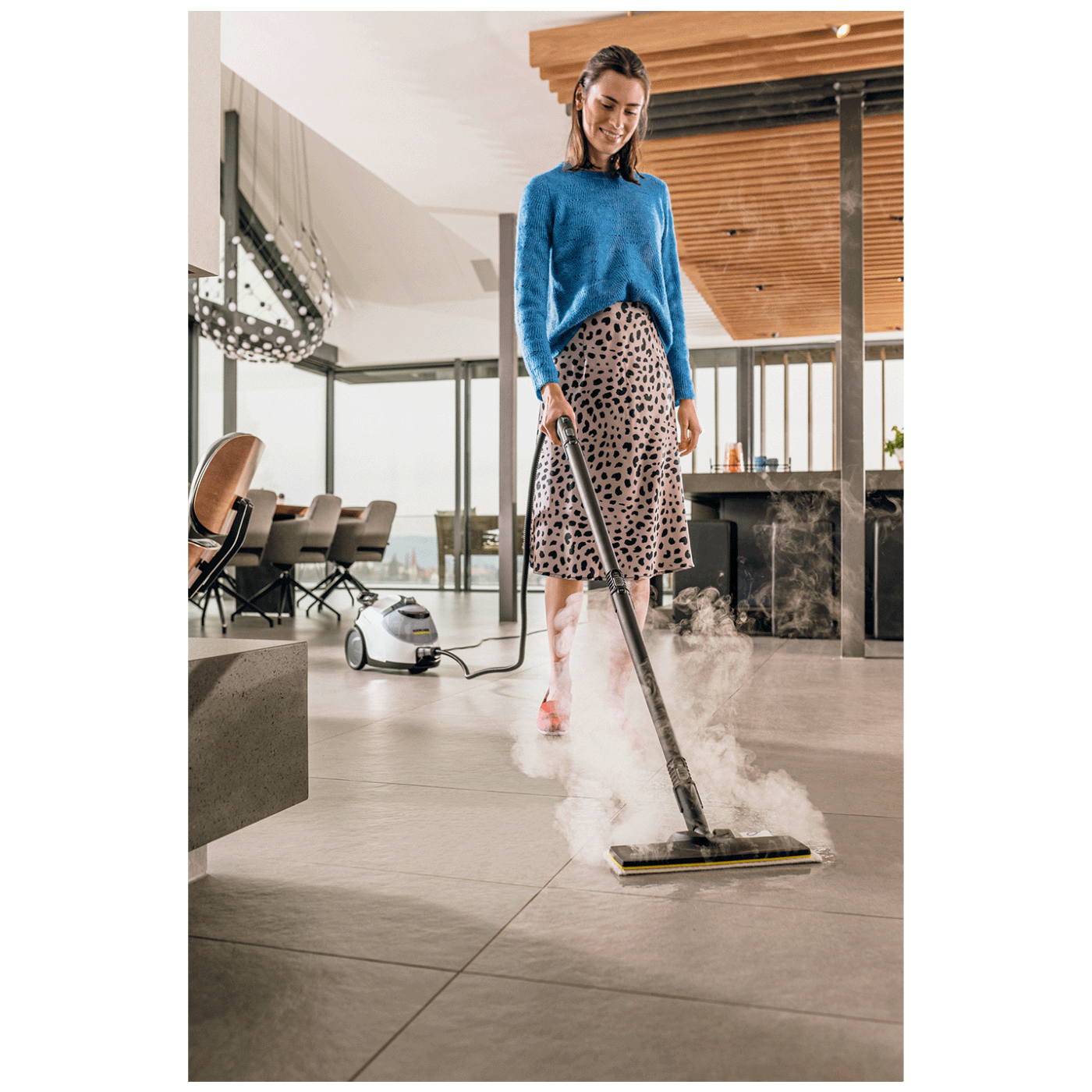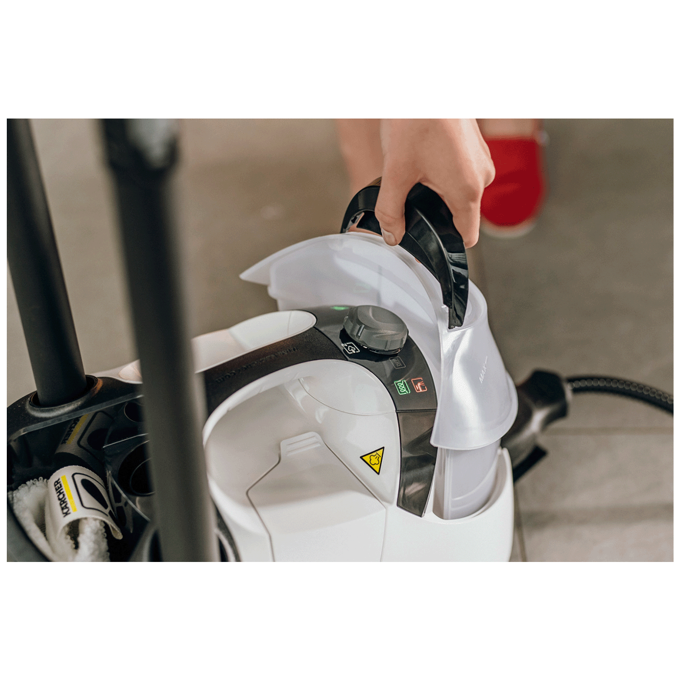 Ovaj model dolazi i sa peglom na paru, što omogućava brzo i efikasno peglanje odjeće uz snažan kontinuirani mlaz pare. EasyFix podna mlaznica sa sistemom na čičak omogućava jednostavno postavljanje i uklanjanje krpe bez kontakta s prljavštinom. Zahvaljujući funkciji dopunjavanja rezervoara tokom rada, čišćenje se može obavljati bez prekida.