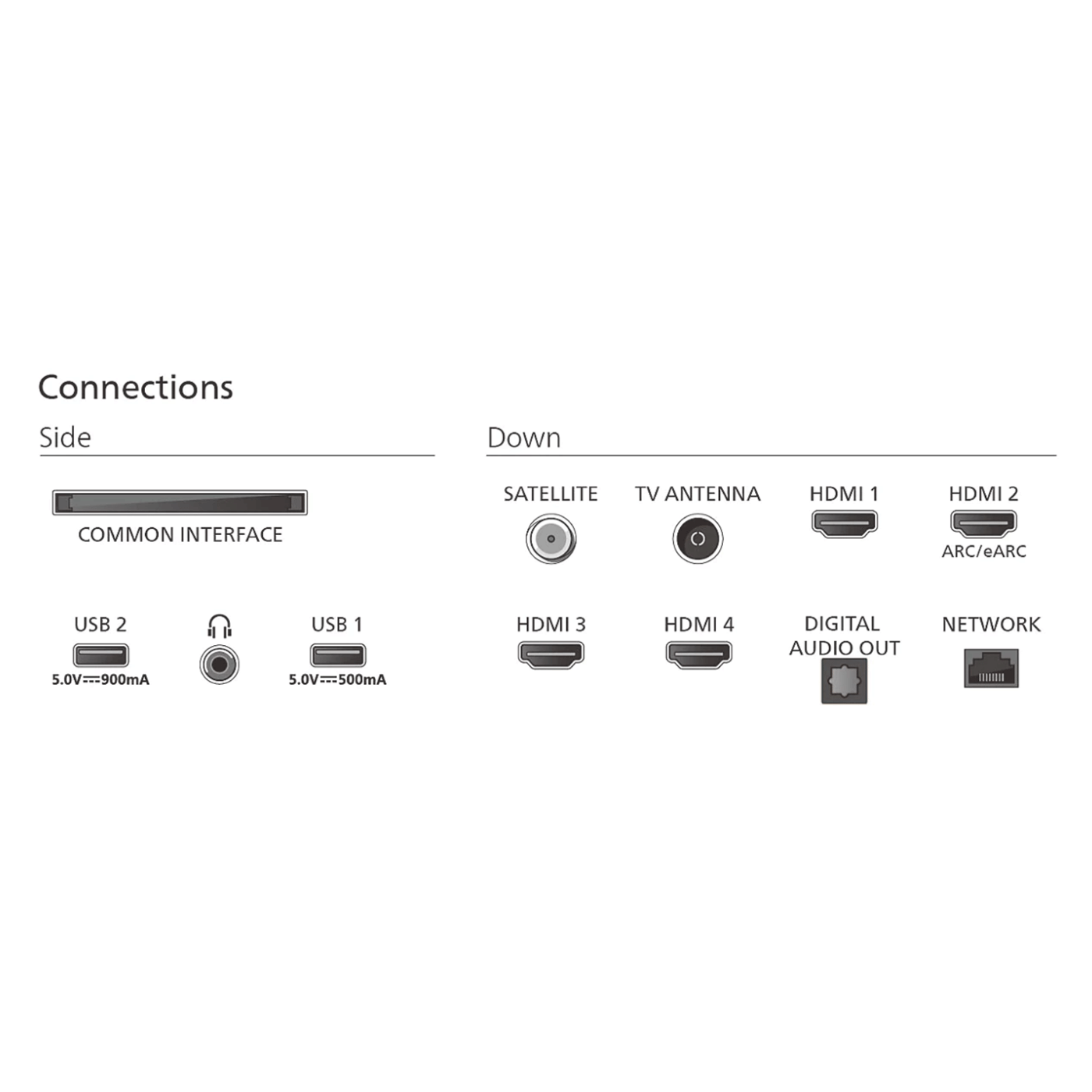 • Portovi: 4× HDMI (HDMI 2.1, podrška za VRR, ALLM, eARC), 2× USB, Wi-Fi, Bluetooth 5.2