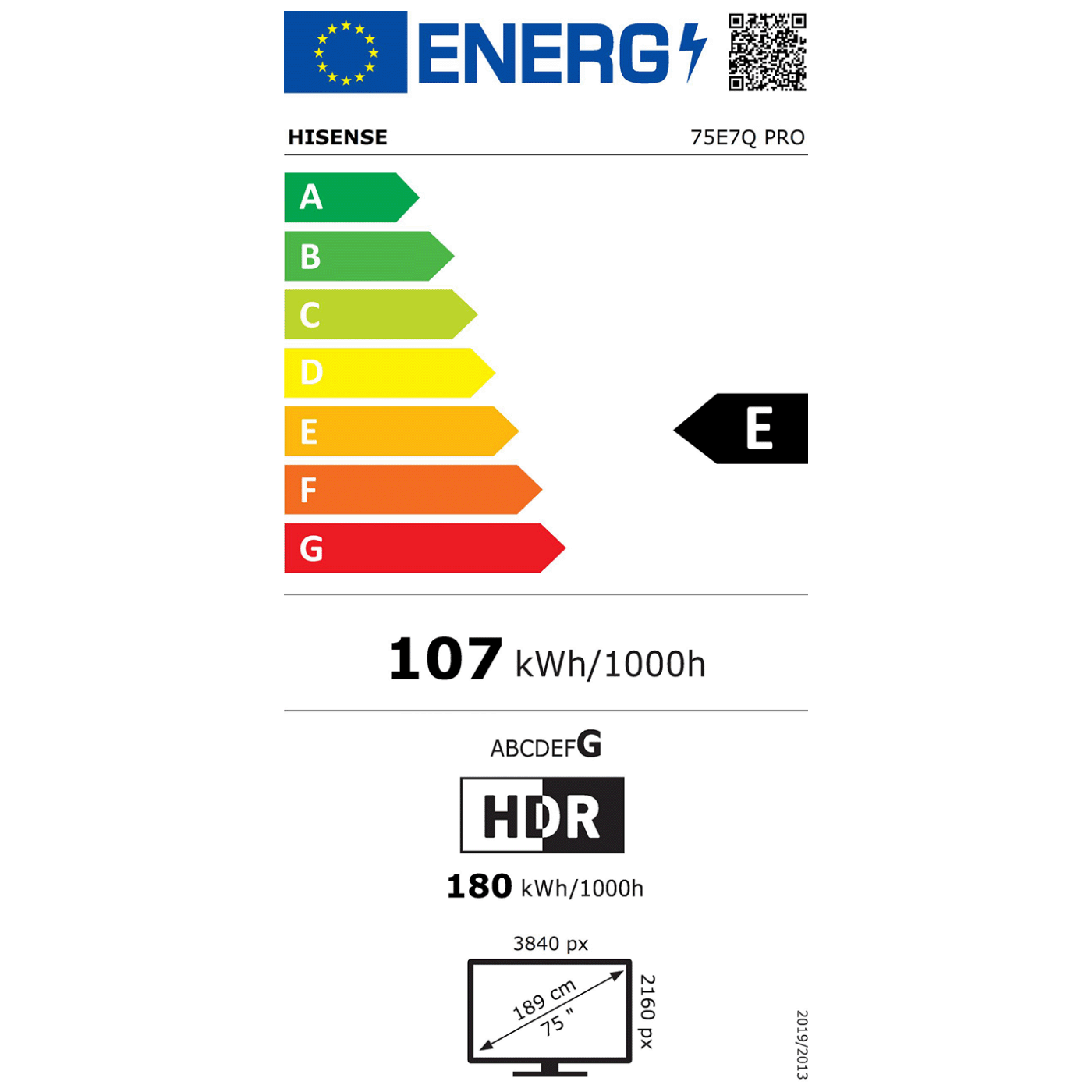 Hisense QLED Smart TV 75E7Q PRO, 75", 4K, 144 Hz