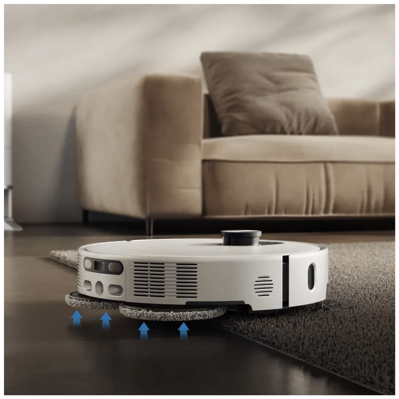 Za još preciznije čišćenje, robotski usisavač koristi bočnu četku i krpu za pod s mogućnošću izvlačenja, omogućujući čišćenje uz zidove i u nepristupačnim kutovima s milimetarskom preciznošću. U kombinaciji s preciznom kontrolom izlaza vode, podovi ostaju savršeno čisti bez tragova.
