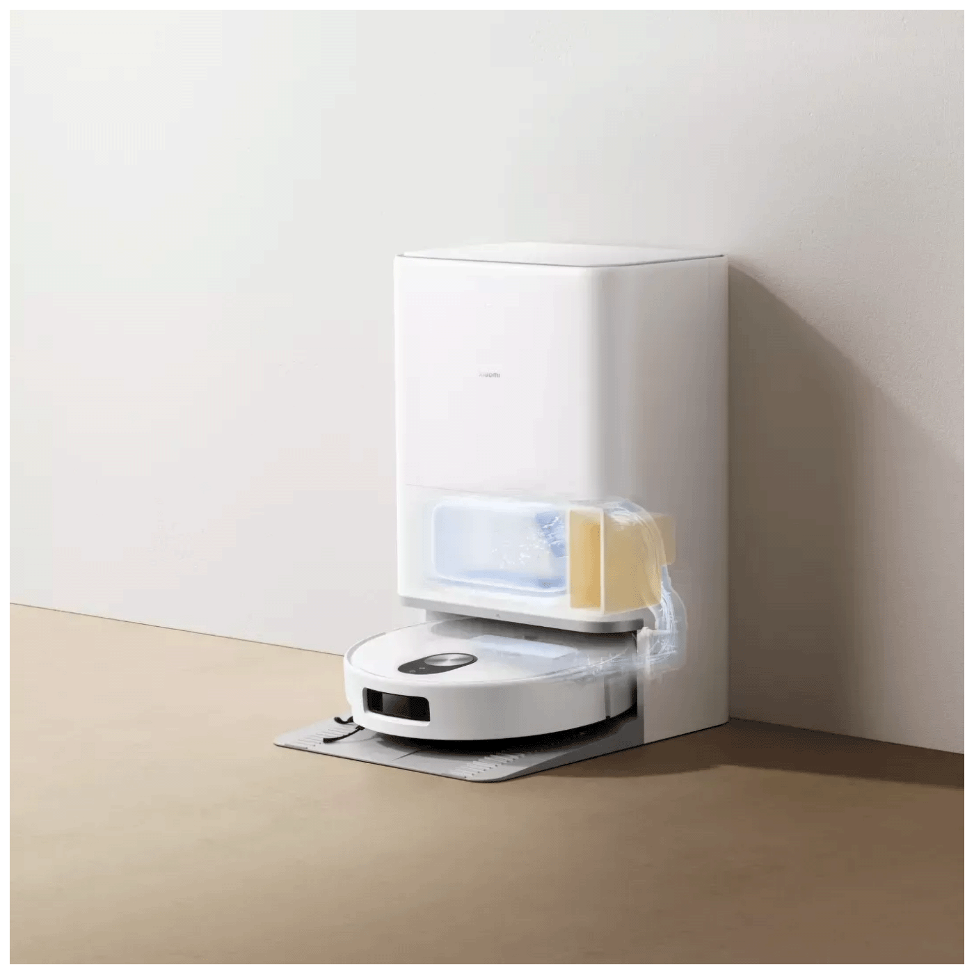 Novi nadograđeni sustav bazne stanice s funkcijom automatskog čišćenja uključuje postolje za pranje krpa s automatskim pranjem na visokoj temperaturi (do 80°C), brzo uklanjajući tvrdokorne mrlje i osiguravajući učinkovito sušenje krpa vrućim zrakom za samo 2 sata. Spremnik za čistu vodu kapaciteta 4 L smanjuje potrebu za čestim nadopunjavanjem, čineći Xiaomi Robot Vacuum 5 savršenim rješenjem za veće prostore i domove. Uz kapacitet vrećice za prašinu od 2,5 L u baznoj stanici, sva prašina sakupljena tijekom čišćenja automatski se usisava u vrećicu, čineći održavanje vašeg prostora još lakšim.