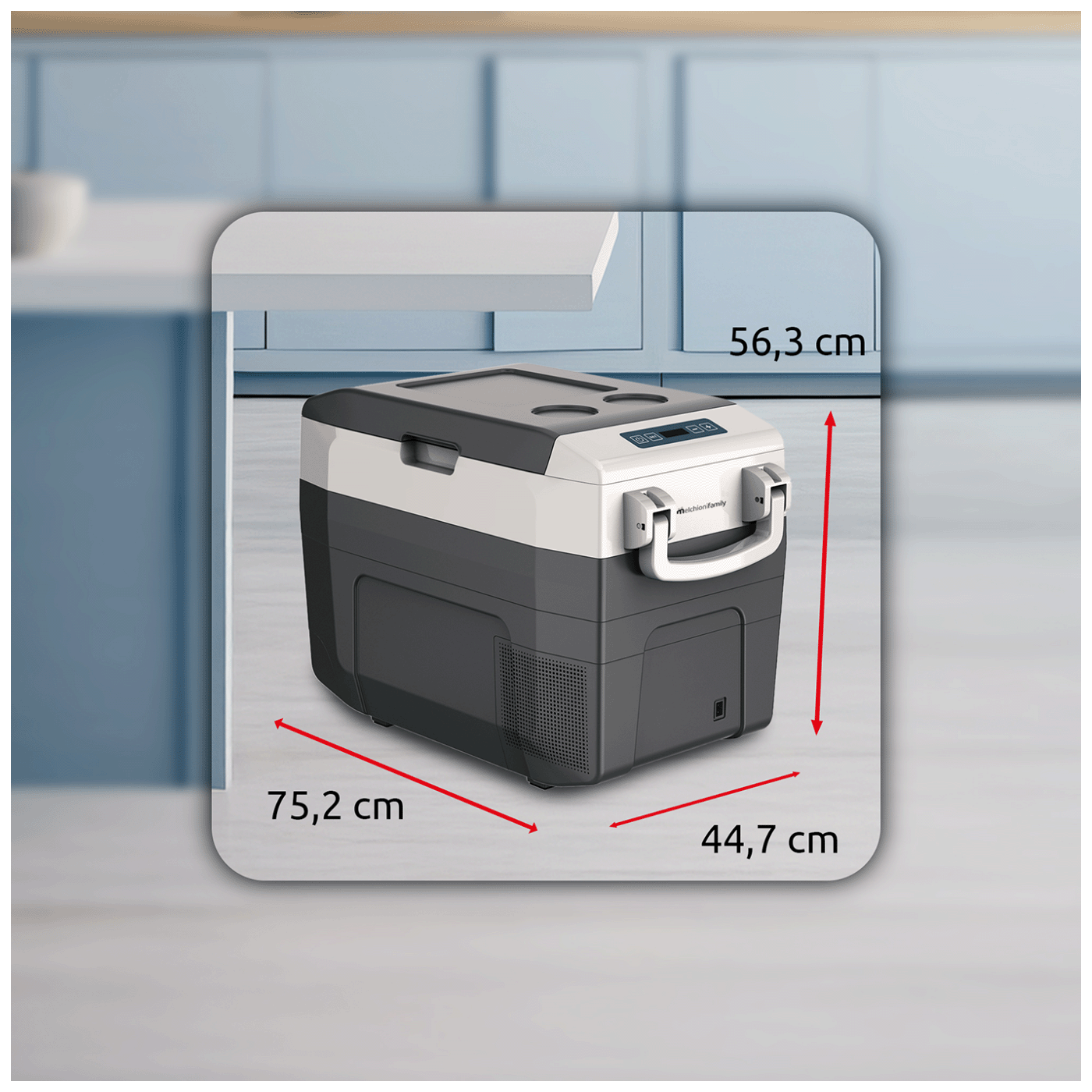 Opremljen je efikasnim kompresorom koji održava optimalne uslove čak i u ekstremnim okruženjima, u rasponu od -18 °C do 50 °C. Frižider ima praktičan dizajn s uvlačivim ručkama za lakši transport te upravljačku ploču s LED ekranom koja olakšava podešavanje temperature.