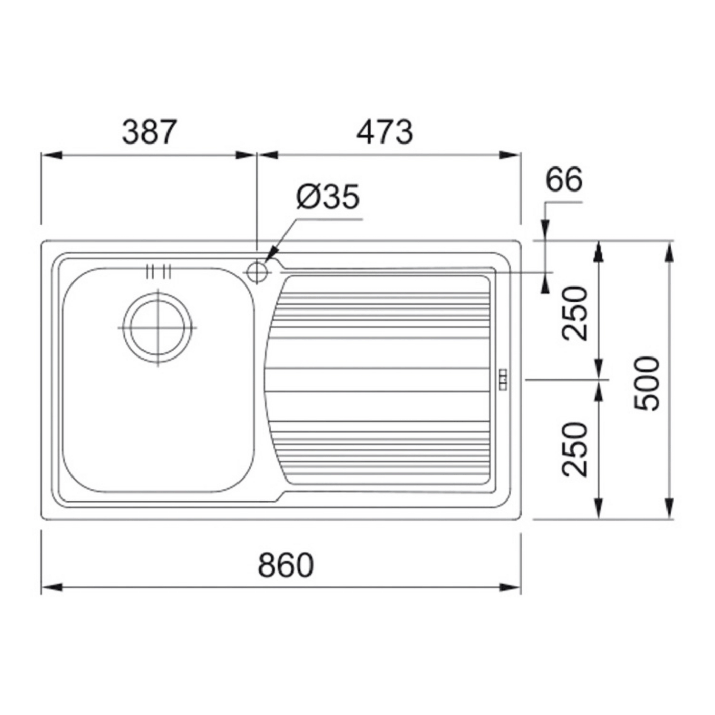 Sudoper ugradbeni, 840x480, INOX, Lijeva
