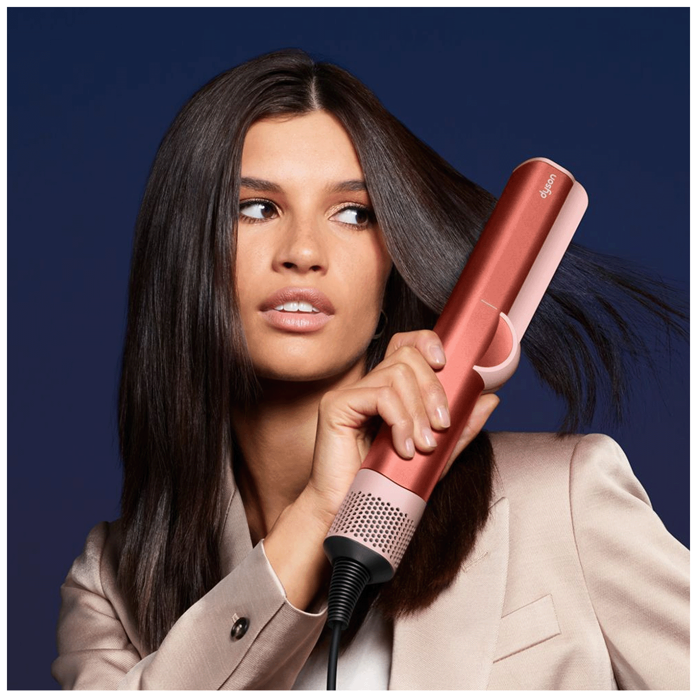 Naša najnovija tehnologija njege kose upotrebljava protok zraka pod visokim tlakom za ravnanje kose dok se suši. Zrak je precizno zagrijan i ravnomjerno se raspršuje kroz pramenove dok oblikujete, nije potrebna ekstremna toplina.