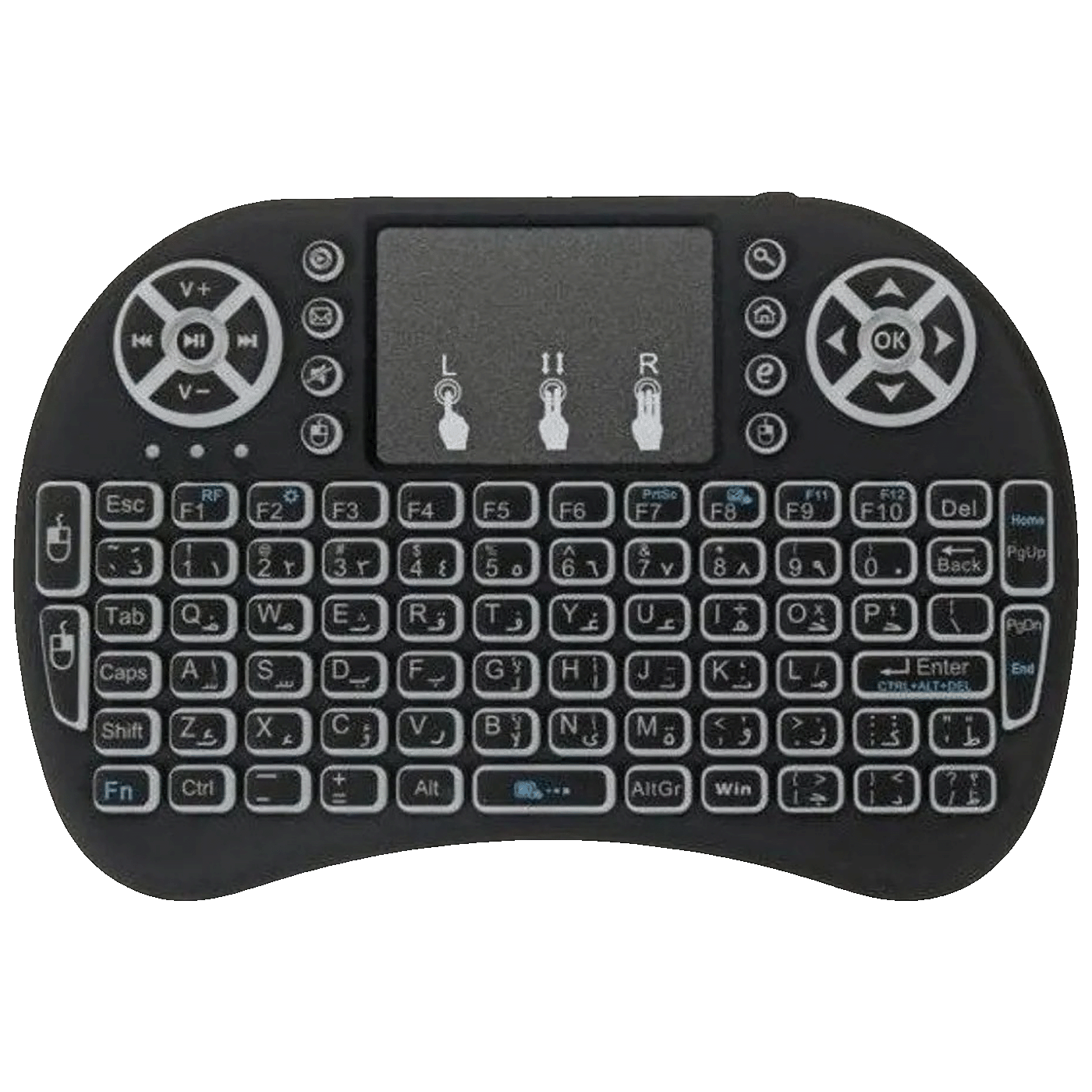 Gembird GMB‑I8 je kompaktna 2.4GHz bežična mini tastatura dizajnirana za gejming i multimedijalnu upotrebu. Ovaj multifunkcionalni uređaj kombinuje tastaturu, visoko osjetljivi touchpad i daljinsku kontrolu u jednom, što je čini praktičnim za korištenje sa računarom, pametnim televizorima i Android TV BOX uređajima.