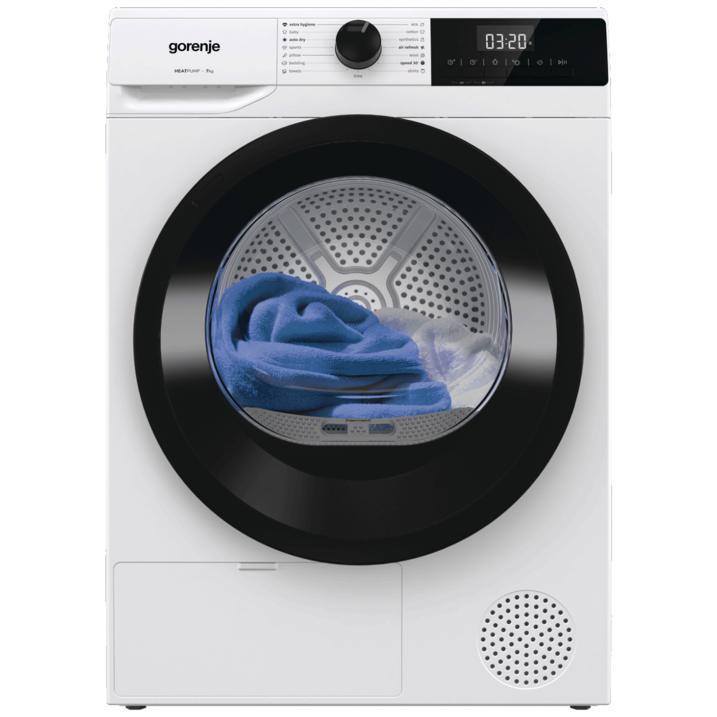 Gorenje DHLE70E je kondenzacijska sušilica veša sa toplotnom pumpom koja omogućava pouzdano i efikasno sušenje uz jednostavno upravljanje. Dizajnirana je za svakodnevnu upotrebu, sa više programa koji se prilagođavaju različitim vrstama tkanina. Zahvaljujući modernim funkcijama i optimizovanom radu, osigurava ravnomjerno sušenje uz očuvanje kvaliteta odjeće, dok pregledan displej i praktične opcije olakšavaju korištenje.