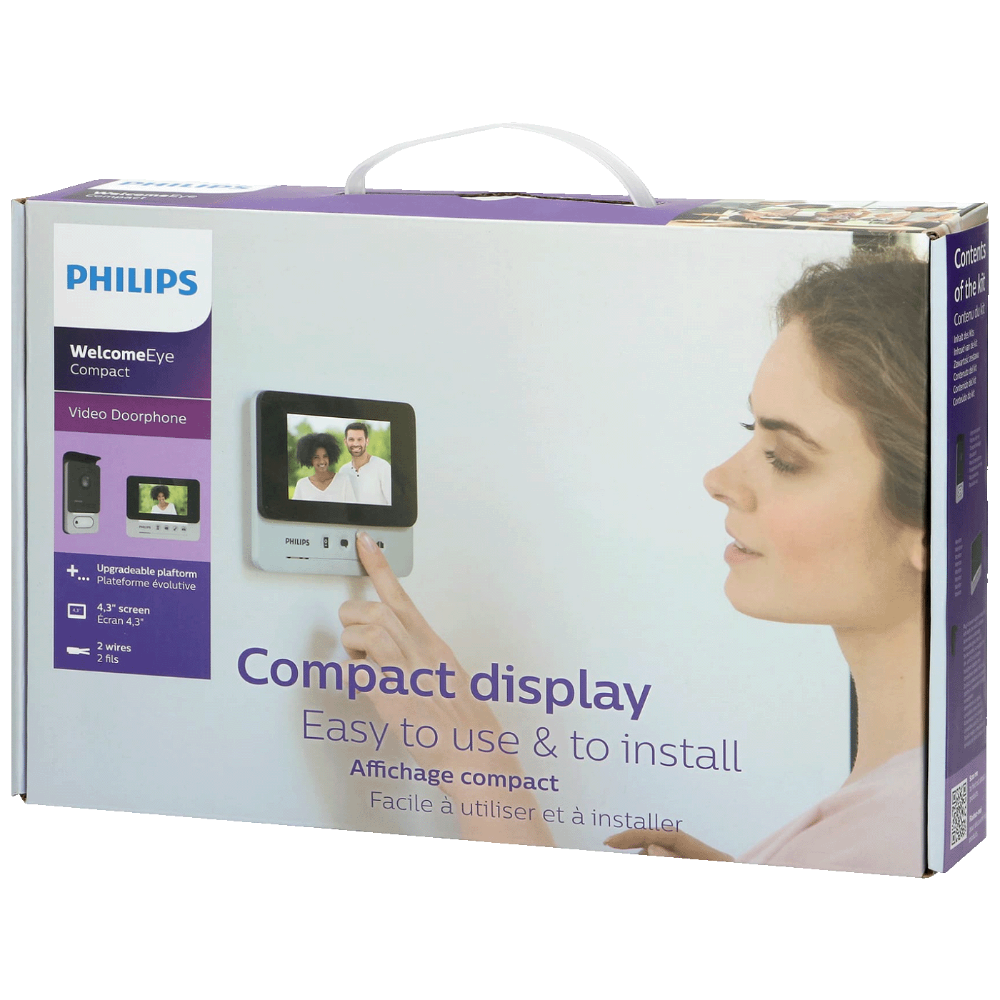 Philips WelcomeEye Compact video interfon komplet je moderan, ali jednostavan za korištenje. Set uključuje ultra tanak ekran od 4,3 inča s podesivom jačinom zvuka i parametrima slike, kao i 6 različitih melodija zvona.