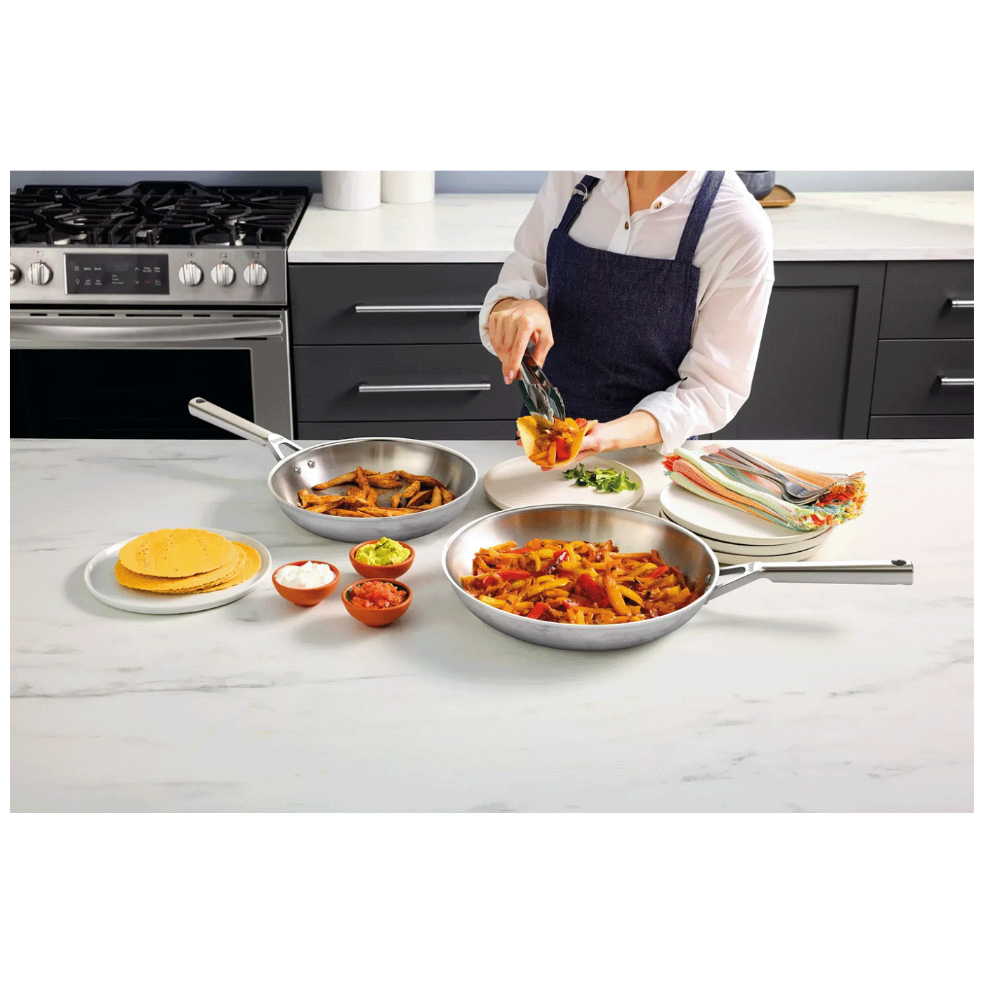 Set uključuje četiri lonca različitih veličina i jednu tavu, što omogućava pripremu širokog spektra jela – od supa i umaka do pečenih i prženih jela. Poklopci od kaljenog stakla zadržavaju toplinu i omogućavaju kontrolu tokom kuhanja bez podizanja poklopca.