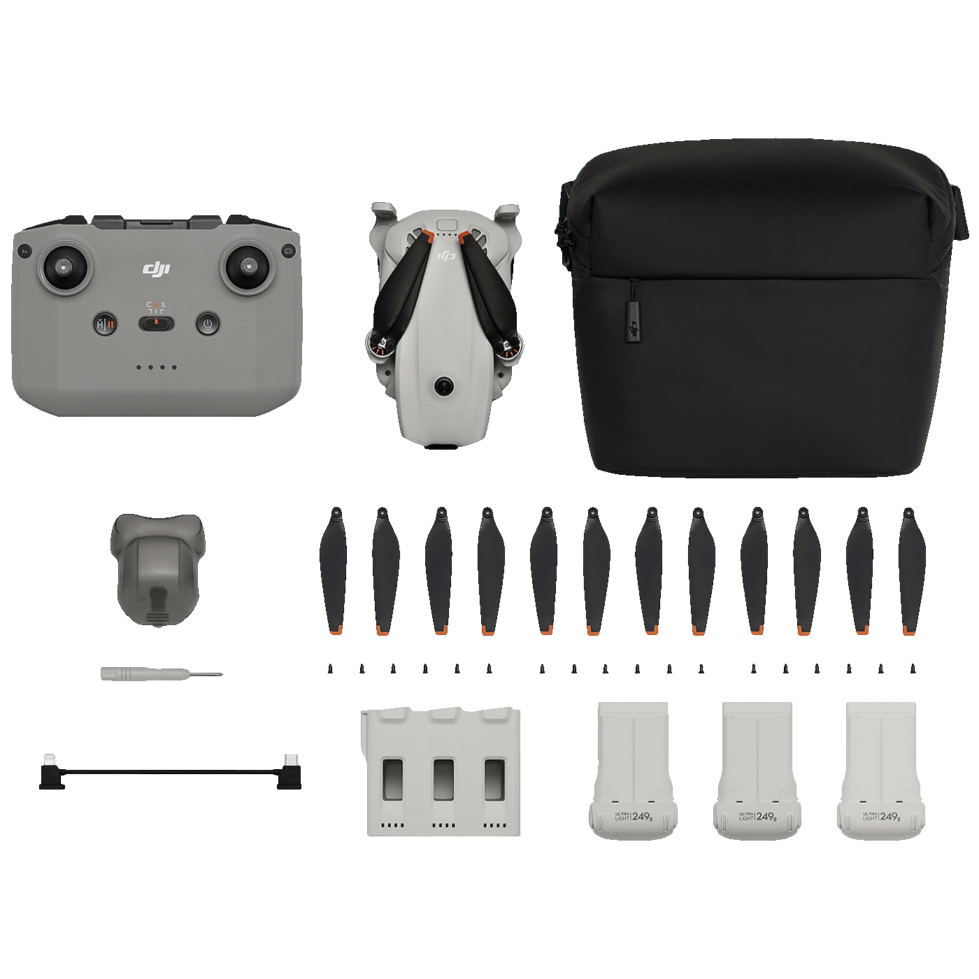 • Svi dodaci uključeni — baterije, propeleri, torba i punjači
