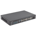 - Switch je opremljen sa ukupno 18 RJ-45 portova, uključujući 16 PoE+ (Fast Ethernet) i 2 Uplink (Combo Gigabit) porta. Dobro osmišljen dizajn i pažnja prema detaljima i kvalitetu komponenti omogućavaju korisniku da postigne do 150 W stvarne snage za krajnje uređaje, što se prevodi u istovremeno povezivanje: